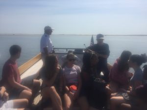 On Saturday morning, we headed down to Chatham on the southern tip of the Cape for an adventure with the Atlantic White Shark Conservancy, the state’s premier shark research organization. Having chartered a private boat tour of the Chatham Harbor, we had a unique opportunity to learn firsthand about Cape Cod’s marine life from Giulia, an experienced naturalist and shark expert. As we cruised around the harbor looking for evidence of white shark activity, we encountered hundreds of (very curious and highly adorable) seals, visited a dogfish fishery, and enjoyed Giulia’s insights into the local marine ecology. At one point, we pulled up an underwater shark receiver to analyze its data log and see if any white sharks had recently passed through the harbor (sadly — or fortunately, for the seals — not on our visit!).